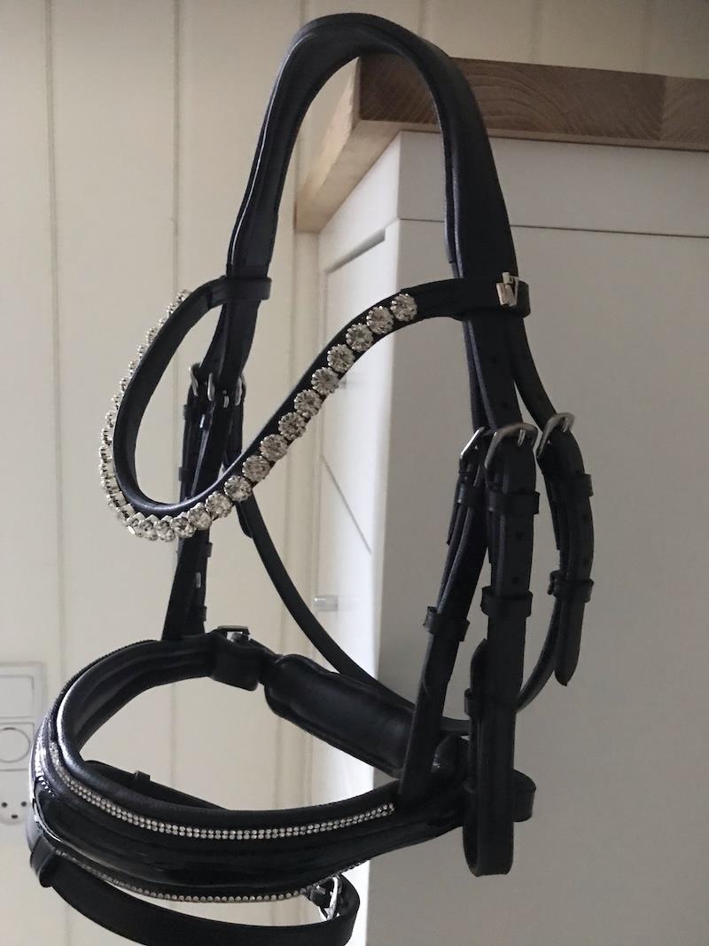 Trense i en lækker kvalitet med ergonomisk nakkestykke og næsebånd.