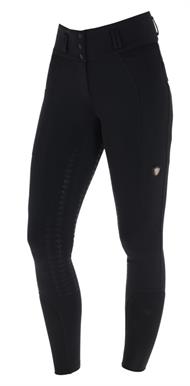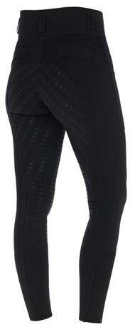 De højtaljede ridebukser med fuldgrip sikrer et stabilt sæde i sadlen og fuld bevægelsesfrihed.
