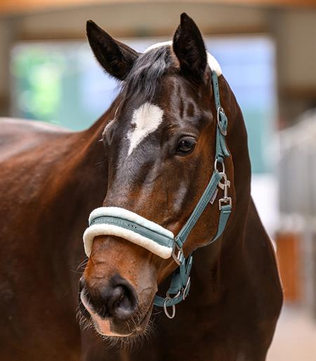 Blød polstring af syntetisk pels på nakkestykket og næseremmen.