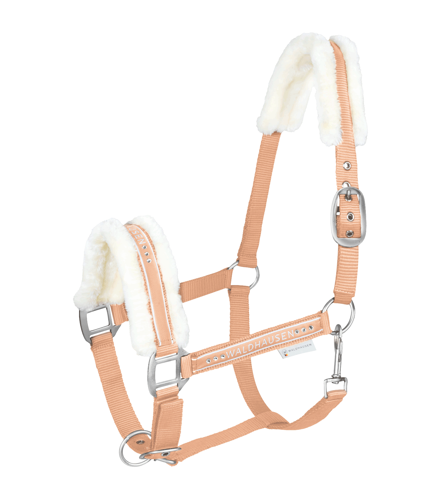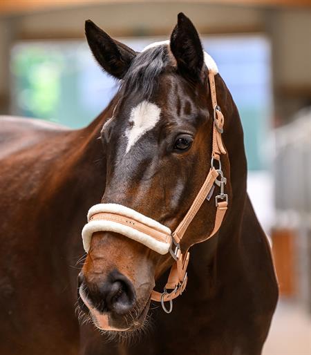 Blød polstring af syntetisk pels på nakkestykket og næseremmen.