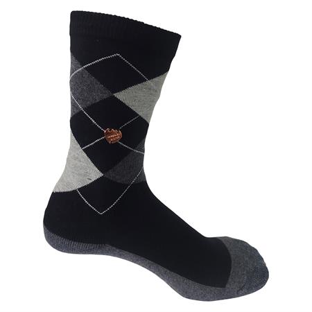 Argyle-mønstret og den karakteristiske metalknap tilføjer det dér ekstra touch af glamour.