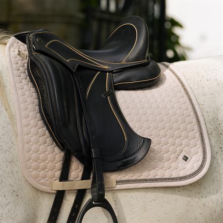 Desuden kan du med den dobbelte gjordstrop stole på, at sadlen bliver liggende præcis, hvor den skal, så du kan fokusere på din præstation og udtrykke din personlighed fuldt ud.