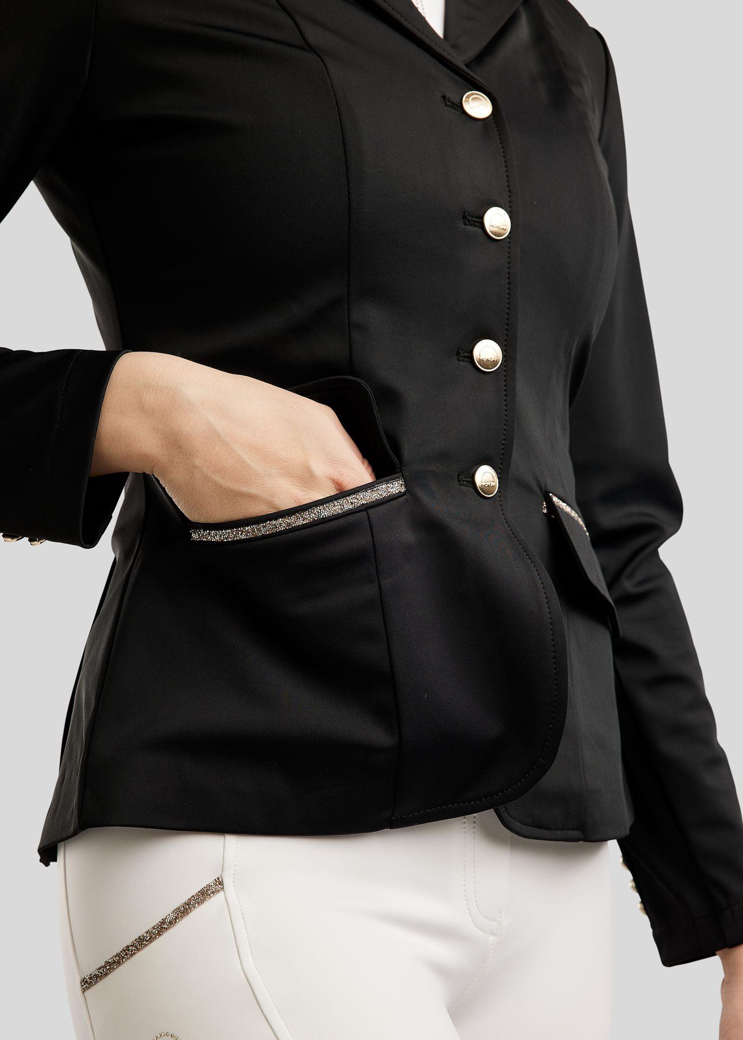 Jakken er designet til rytteren, der ønsker et sofistikeret og eksklusivt look på stævnebanen, uden at gå på kompromis med komfort og bevægelsesfrihed.