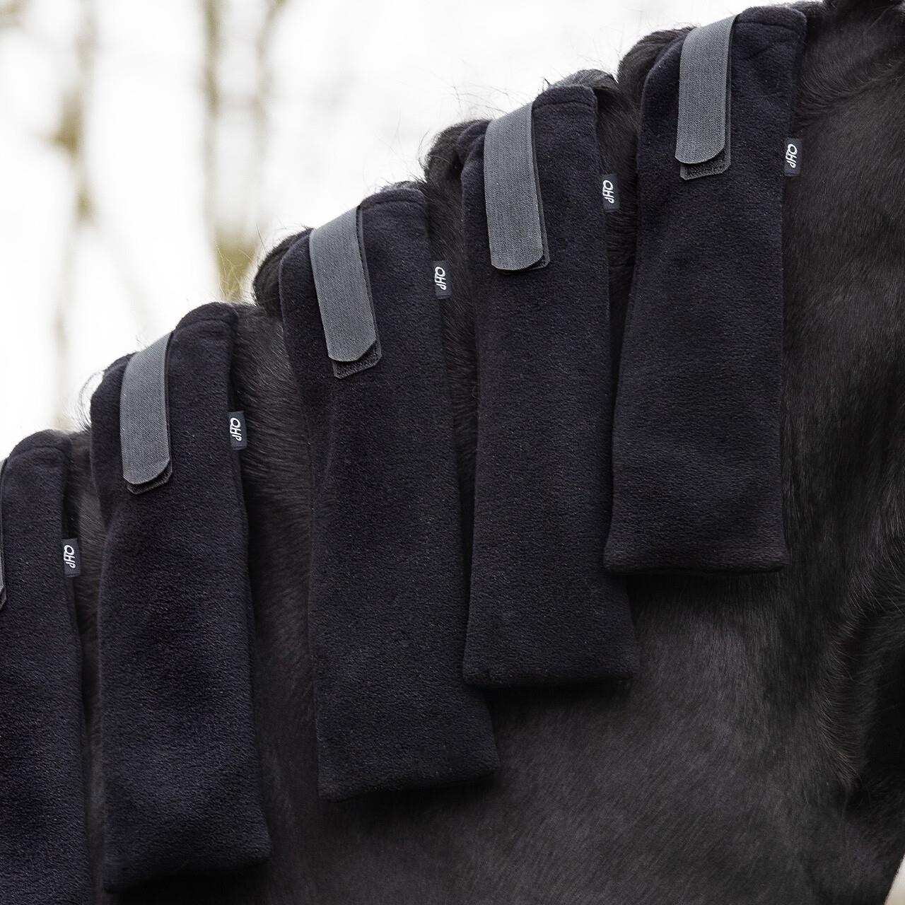Beskyt din hests man med denne praktiske manebeskytter. Den er designet til at blive placeret omkring hestens fletninger for optimal beskyttelse. Manebeskytteren fastgøres nemt med burrebånd og sælges i pakker á 4 stk.