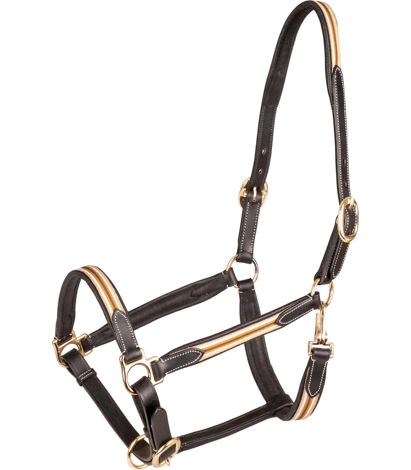 Forsynet med guldfarvede spænder og kan justeres i begge sider af nakken.